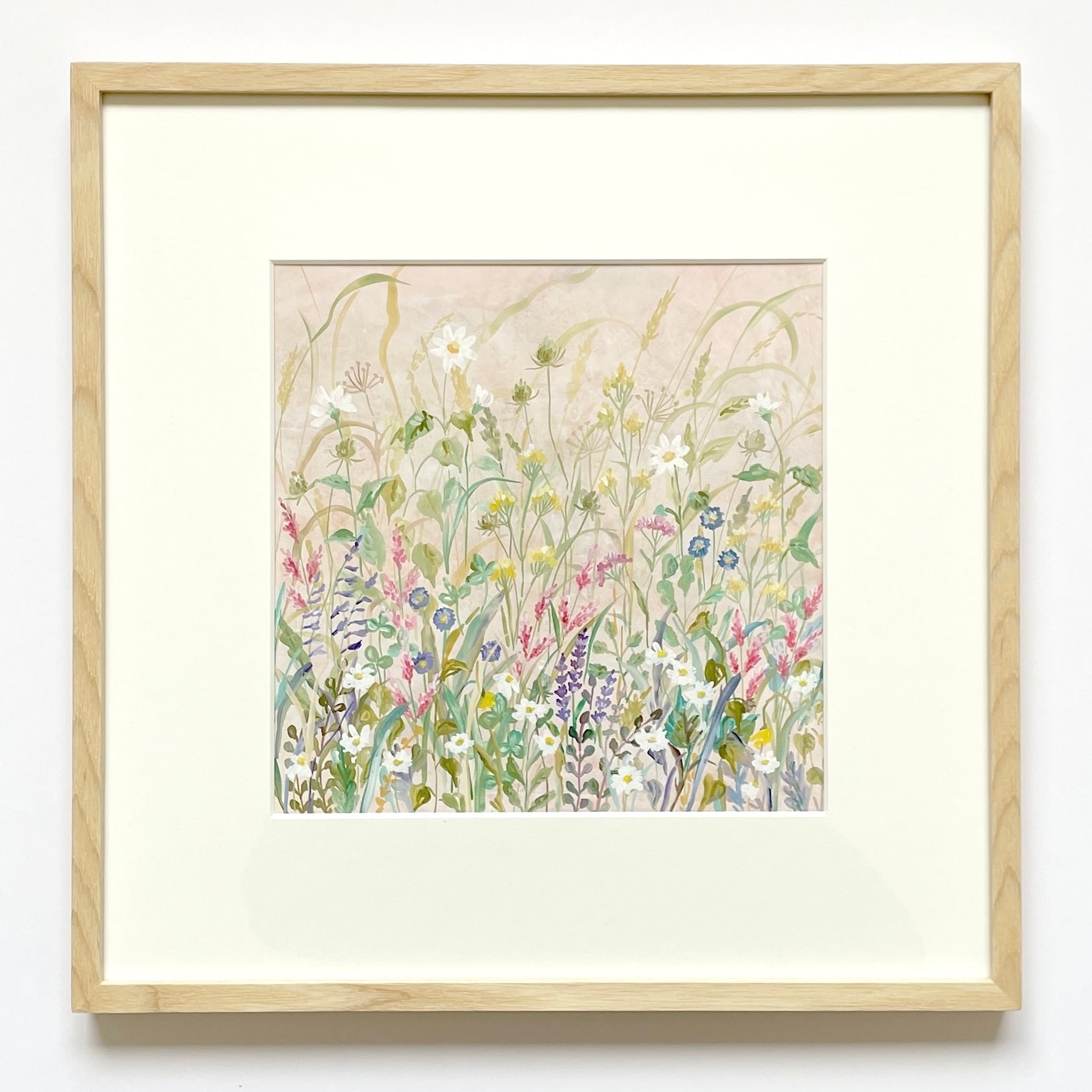 私が好んで歩く河川敷の風景、風にそよぐ草花を思い浮かべながら描きました。