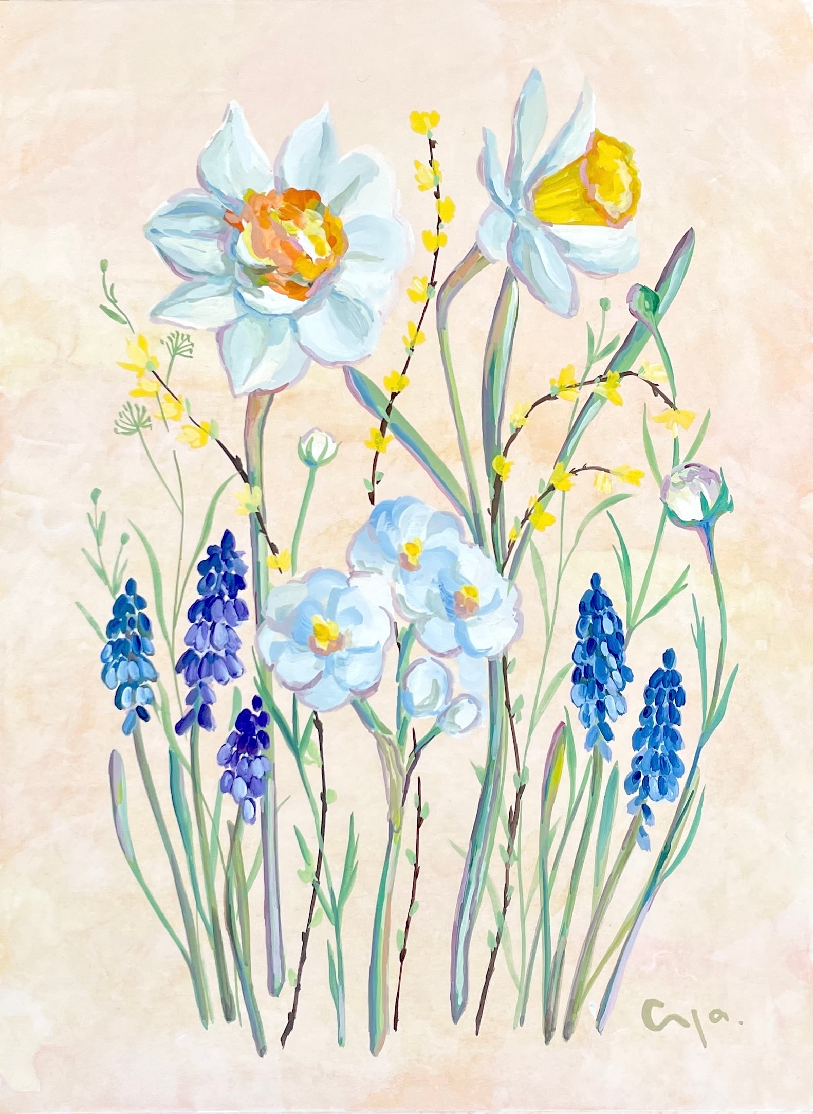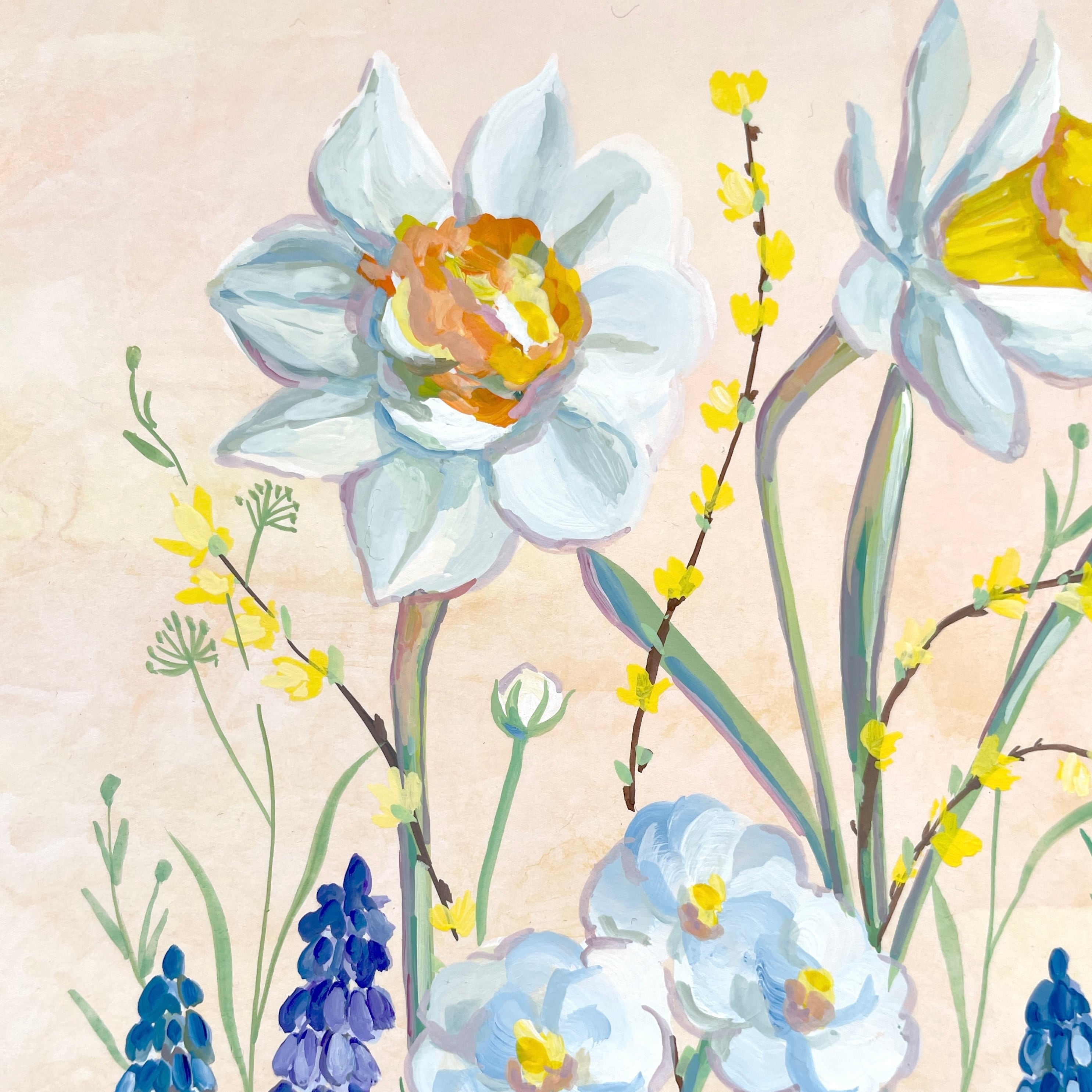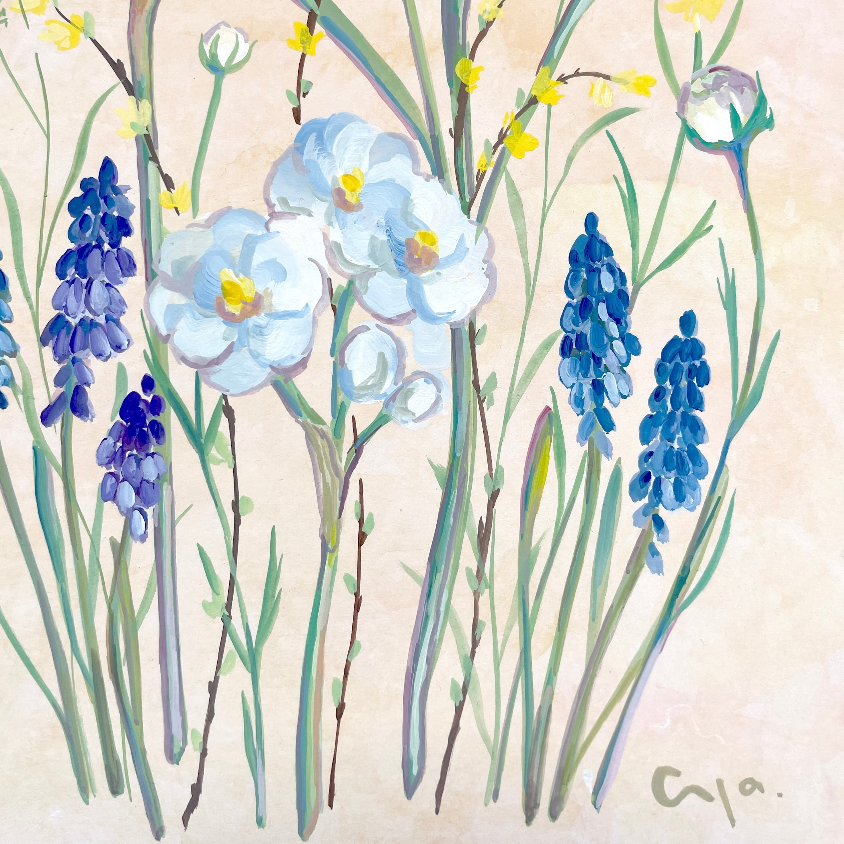 水仙やムスカリを、軽やかなタッチで描きました。