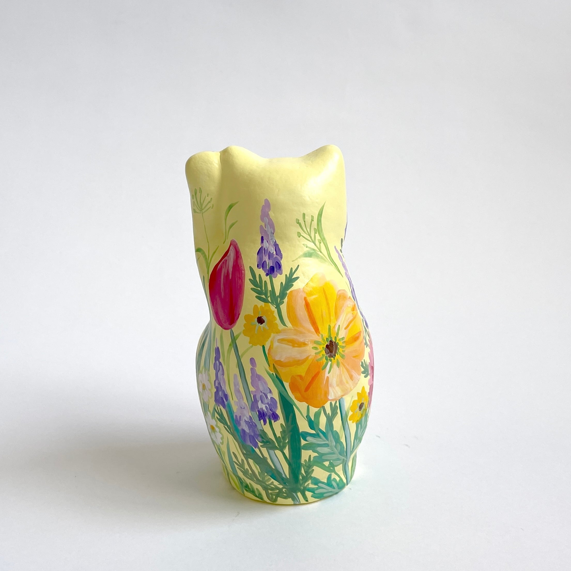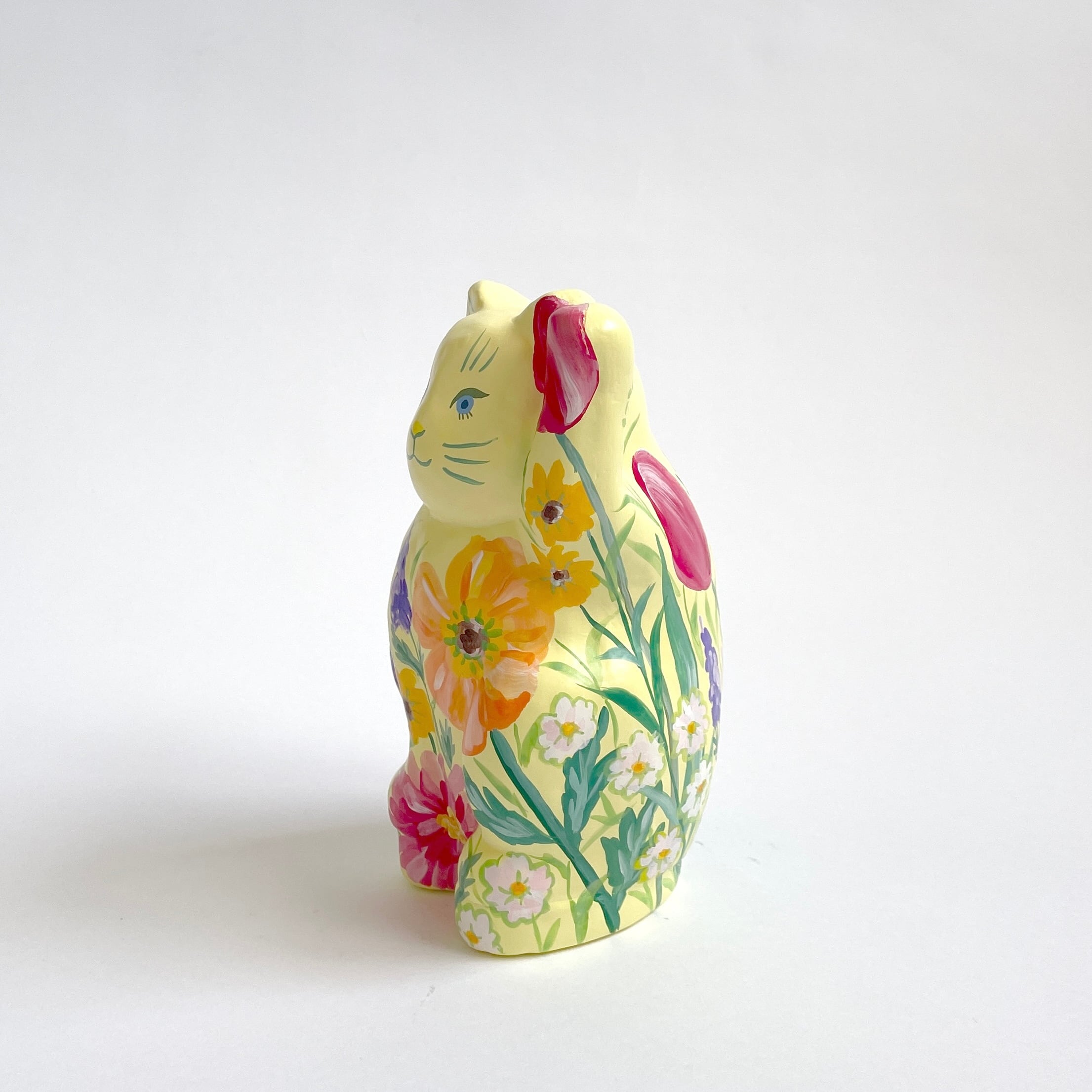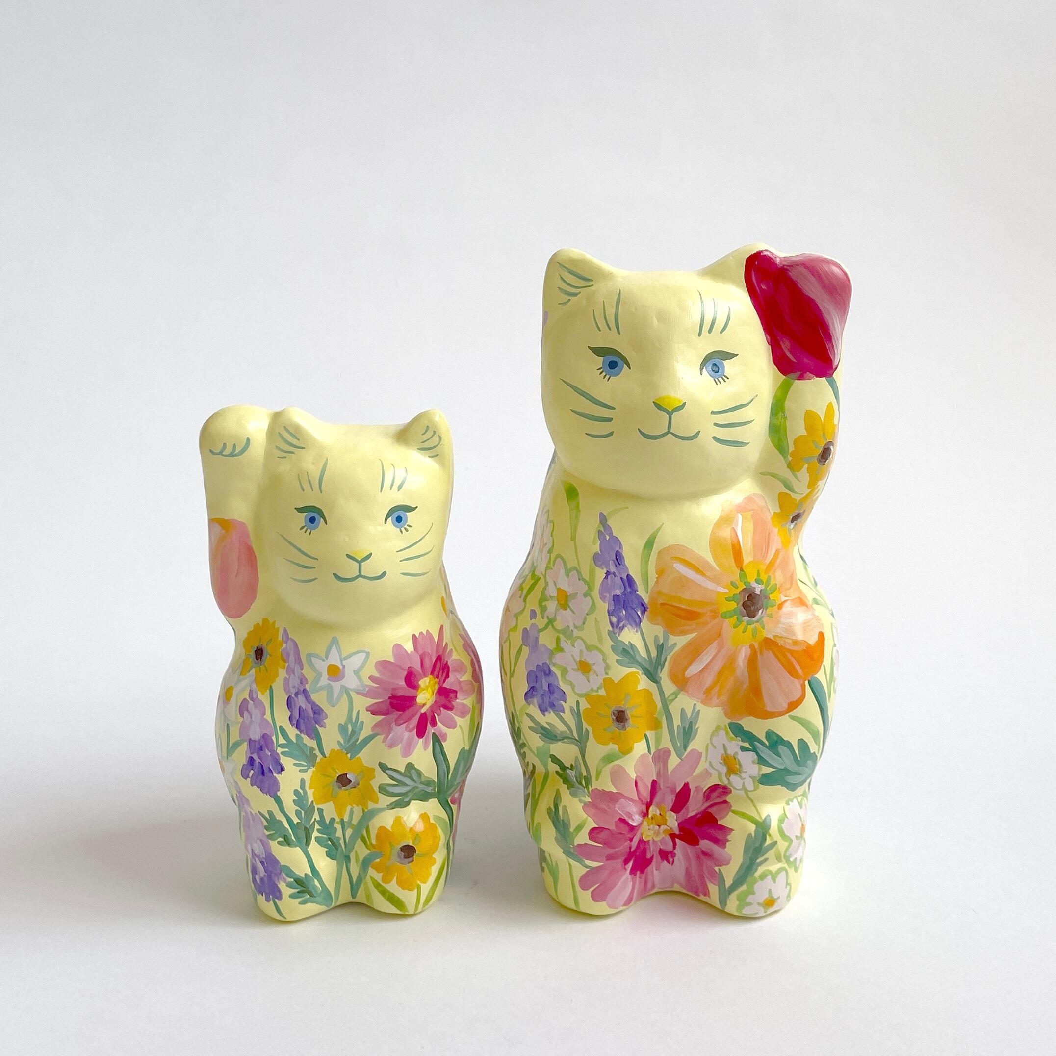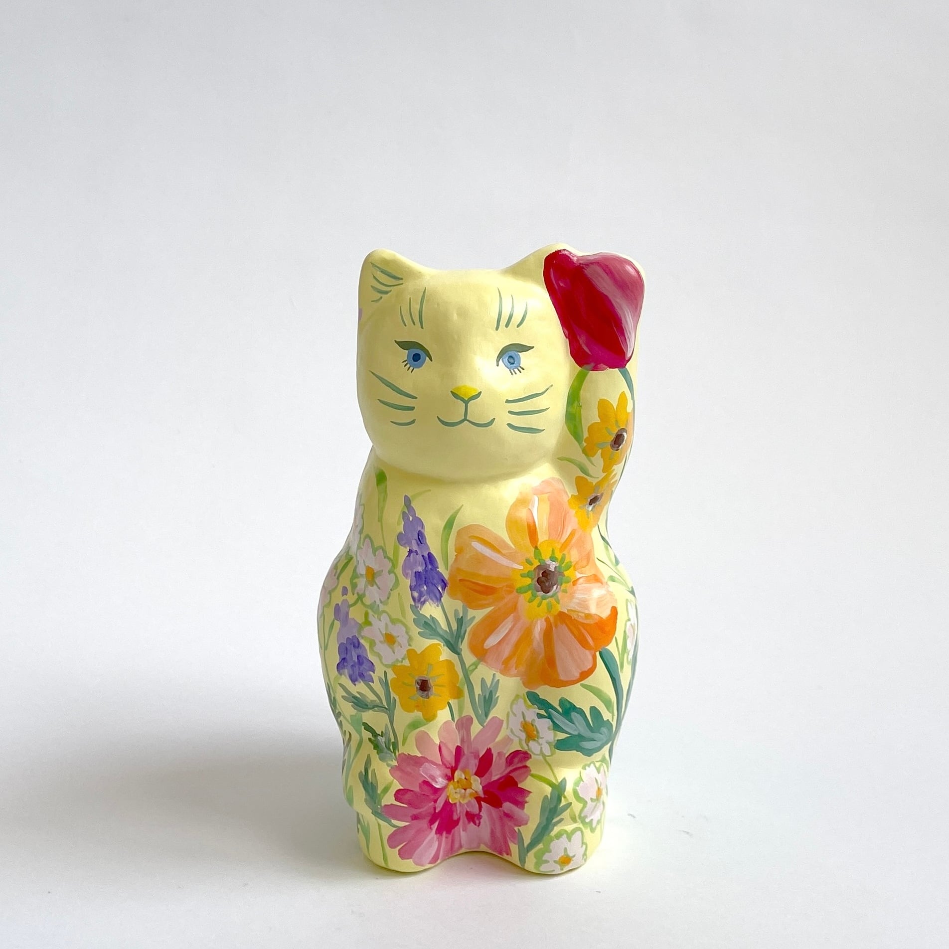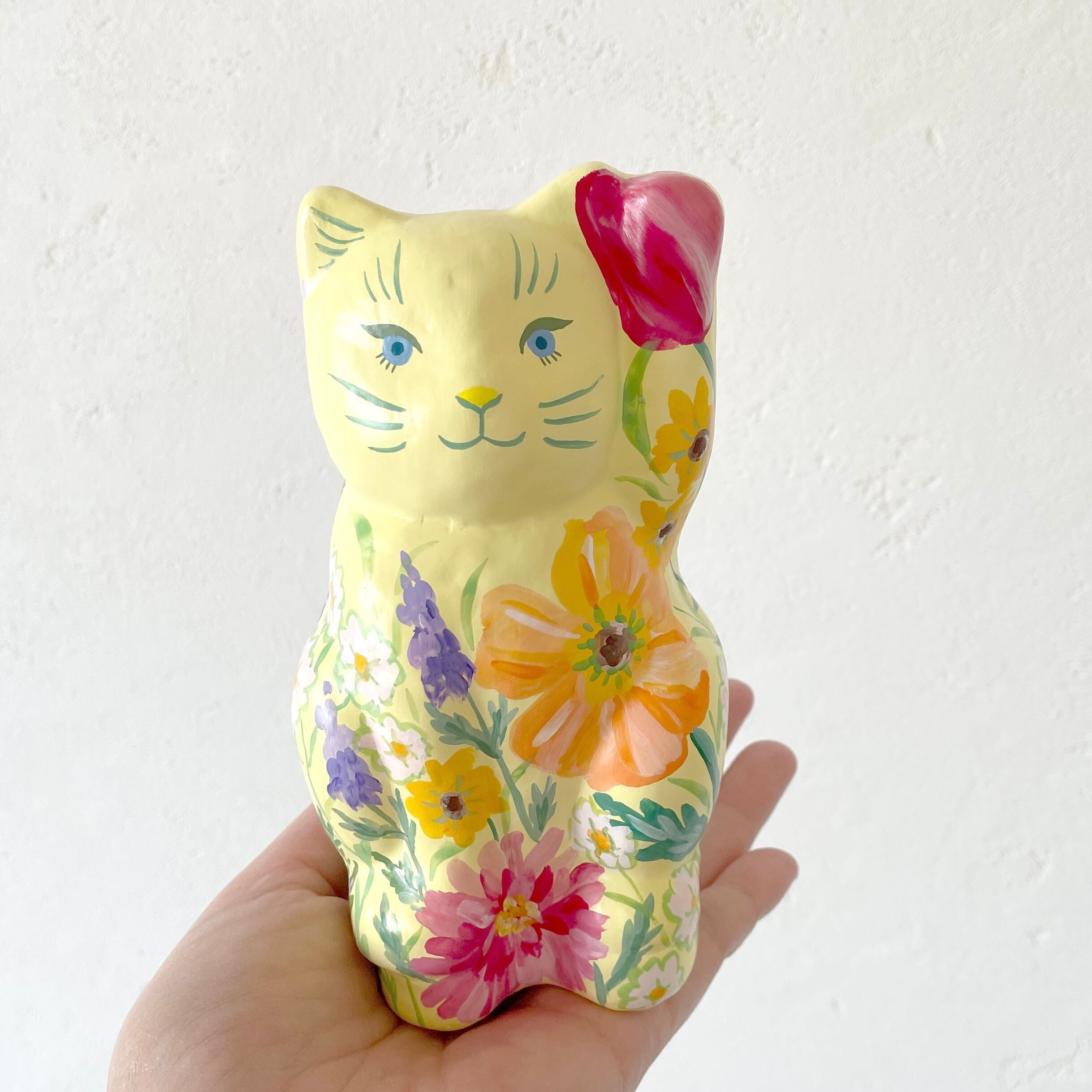 柔らかなイエローの体に、春の庭を詰め込んだような招き猫「HARU」。