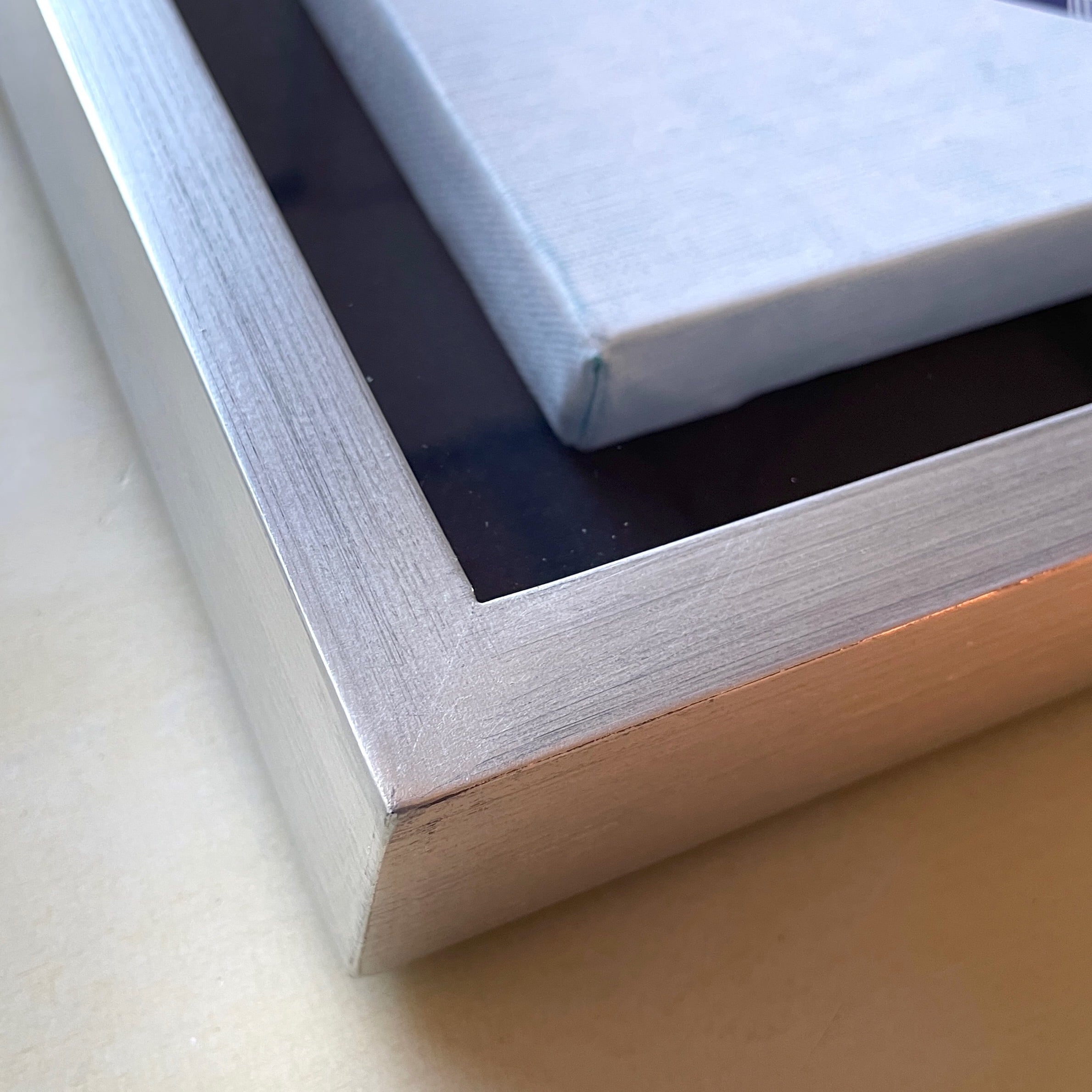 額はボックス額。キャンバスの立体が生かされた存在感のある一枚です。