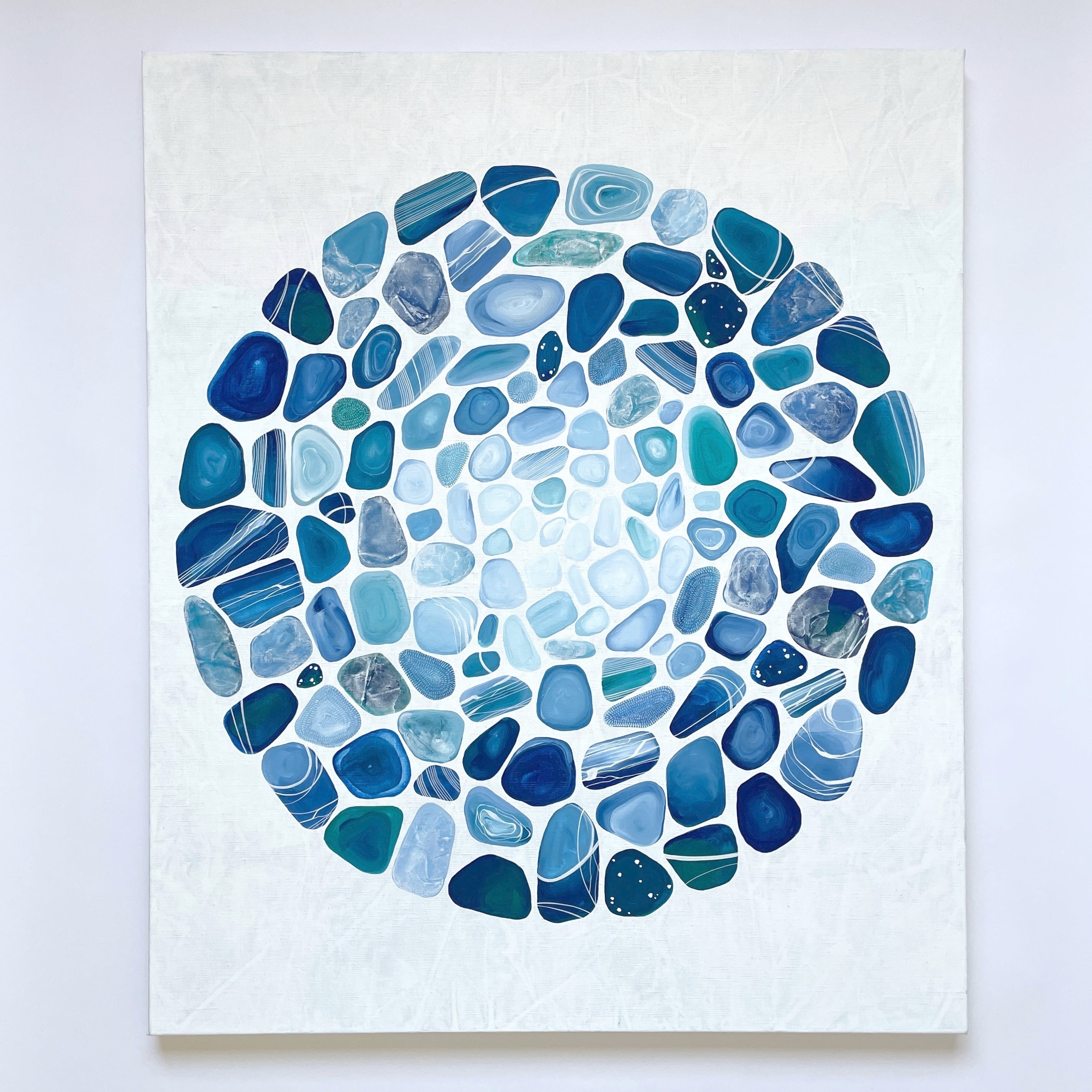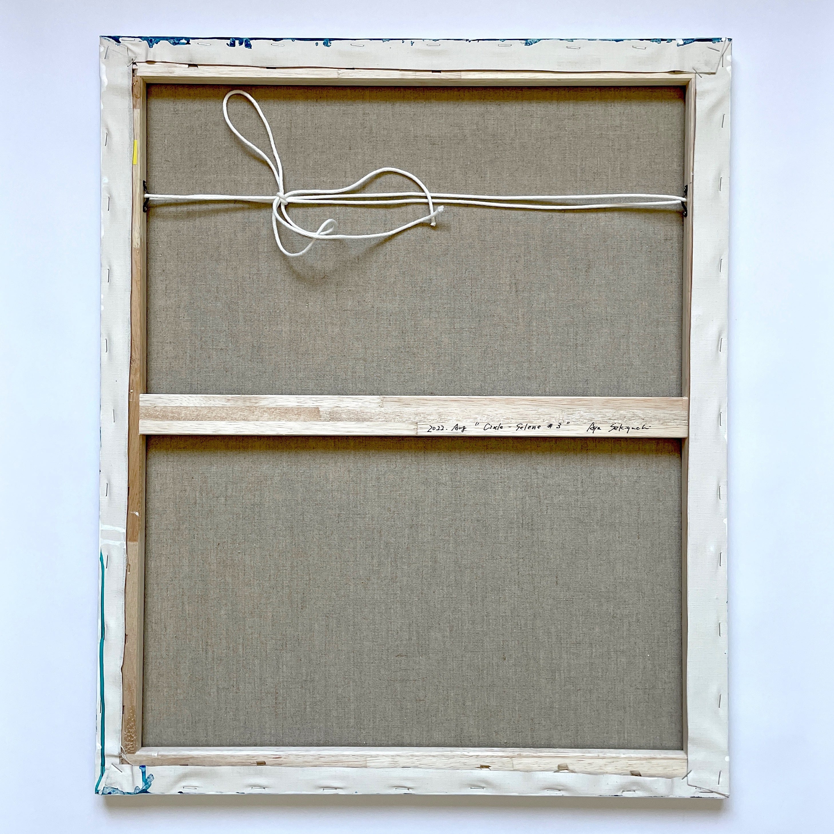 この作品は“Circle”シリーズ。2022年の8月にセレネ美術館で開催した公開制作展示で描いた6部作のひとつです。私が石をよく拾いに行く、富山県黒部市の石田浜の波の音を聞きながら描いた本作は、反転する陰陽が押しては引く波のようにも感じられます。月の女神セレーネの名を持つ「セレネ美術館」で生まれた、静寂な作品に仕上がりました。