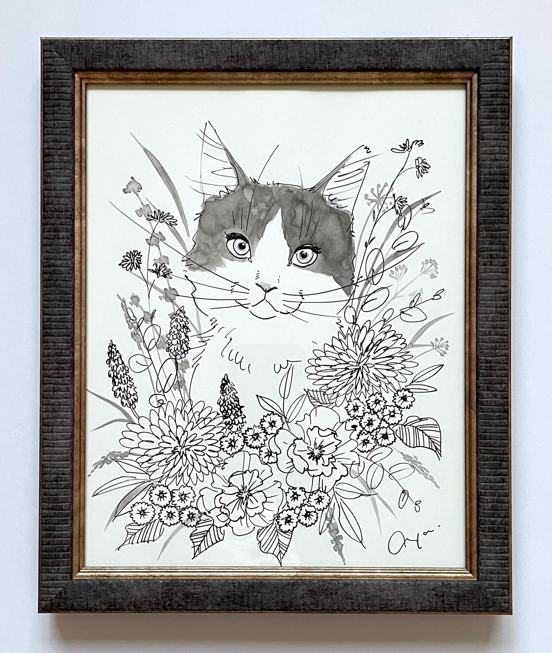 花いっぱいの猫のドローイングで、お部屋も心もパッと明るくなりますように…そう願いながら制作しました。お気に入りの子が見つかれば幸いです。