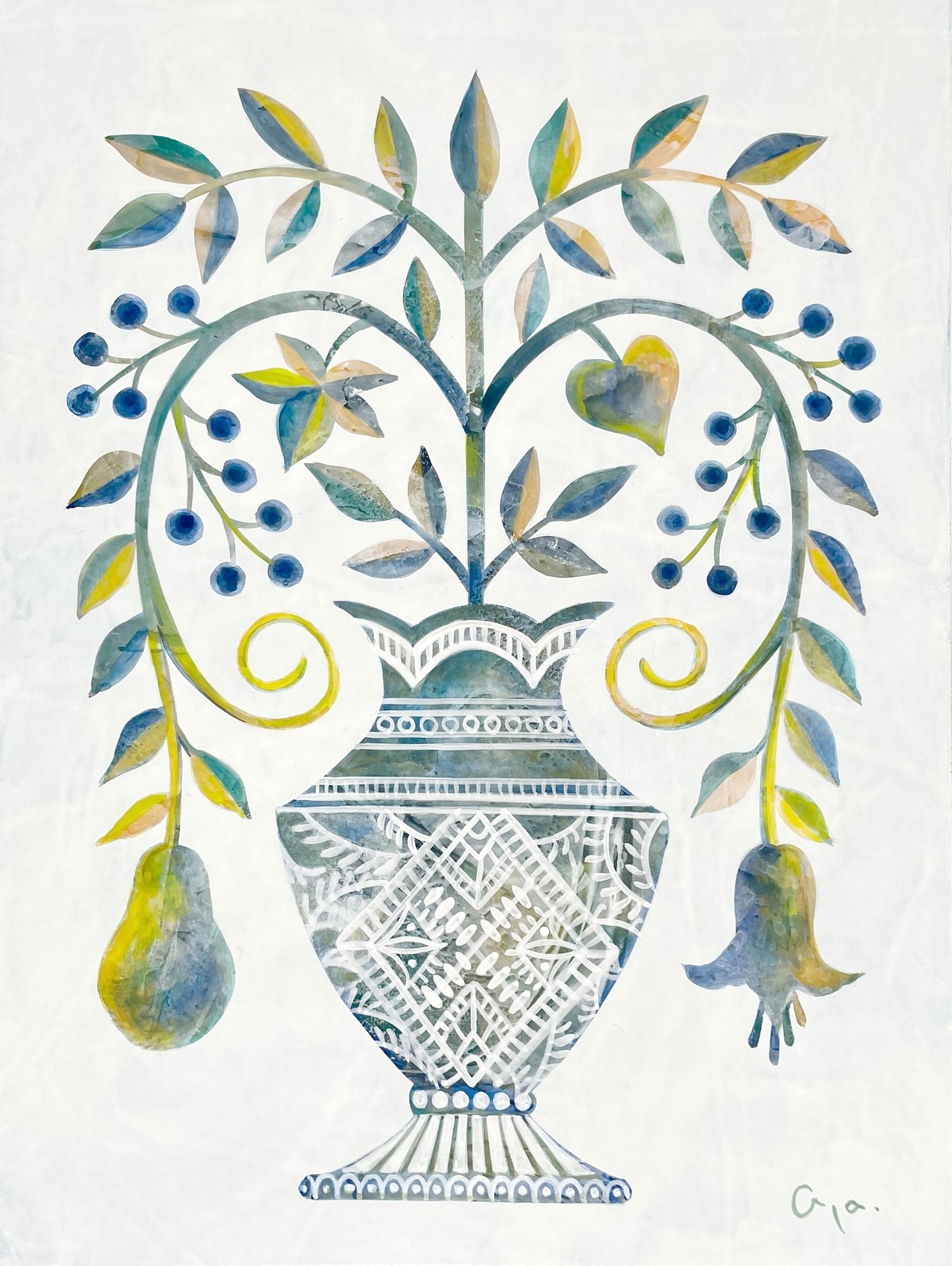 器から伸びた、様々な果実を実らせた木。「ゆたかな」という意味の“Abundant”という名をつけました。実りあるゆたかな暮らしが、作品と共にあることを祈って。